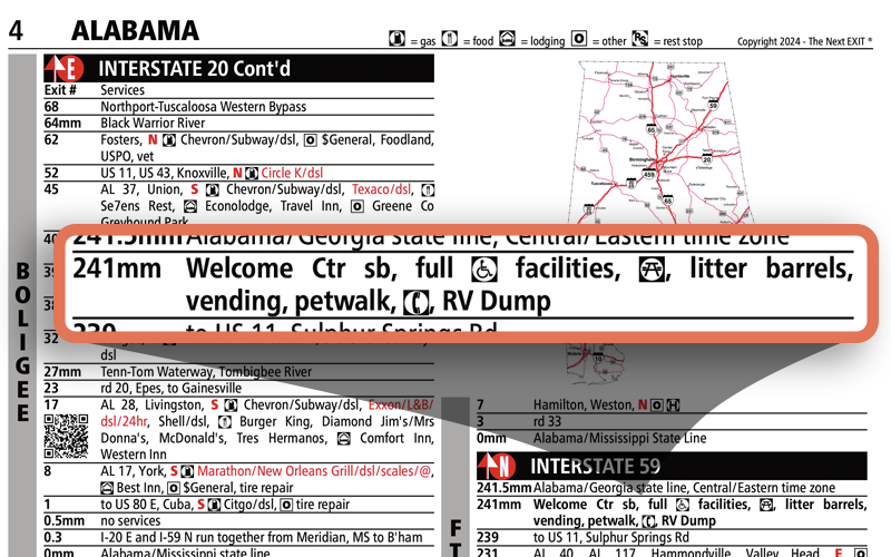 We've organized the Next EXIT so you can follow along as you drive the Interstate Highways. Services are grouped by exit, alphabetized and categorized by service type (gas, food, lodging) and split by direction off the highway to help you quickly and easily find the essential services you'll need on your trip.